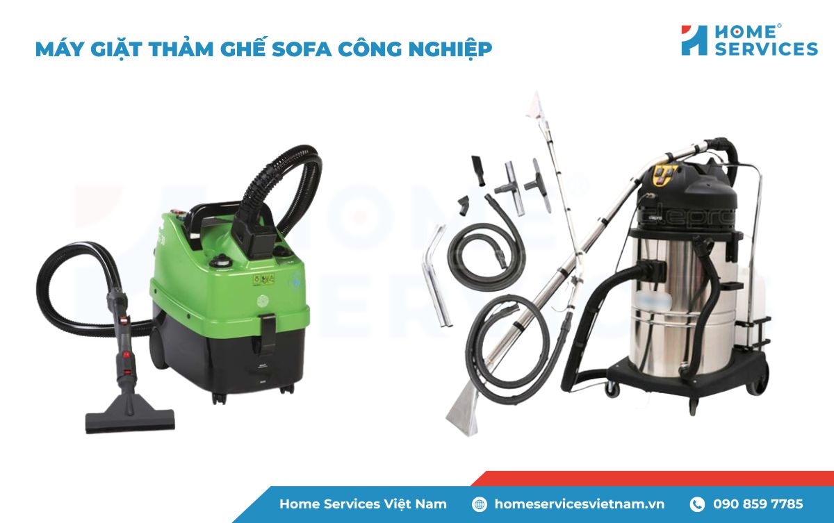 Máy giặt thảm công nghiệp | Phun dung dịch làm sạch và hút ngược lại chất bẩn, giúp làm sạch sâu và làm khô thảm nhanh chóng. | Văn phòng, hành lang khách sạn, hội trường, và các khu vực có trải thảm lớn hoặc ghế sofa bọc nỉ. | |