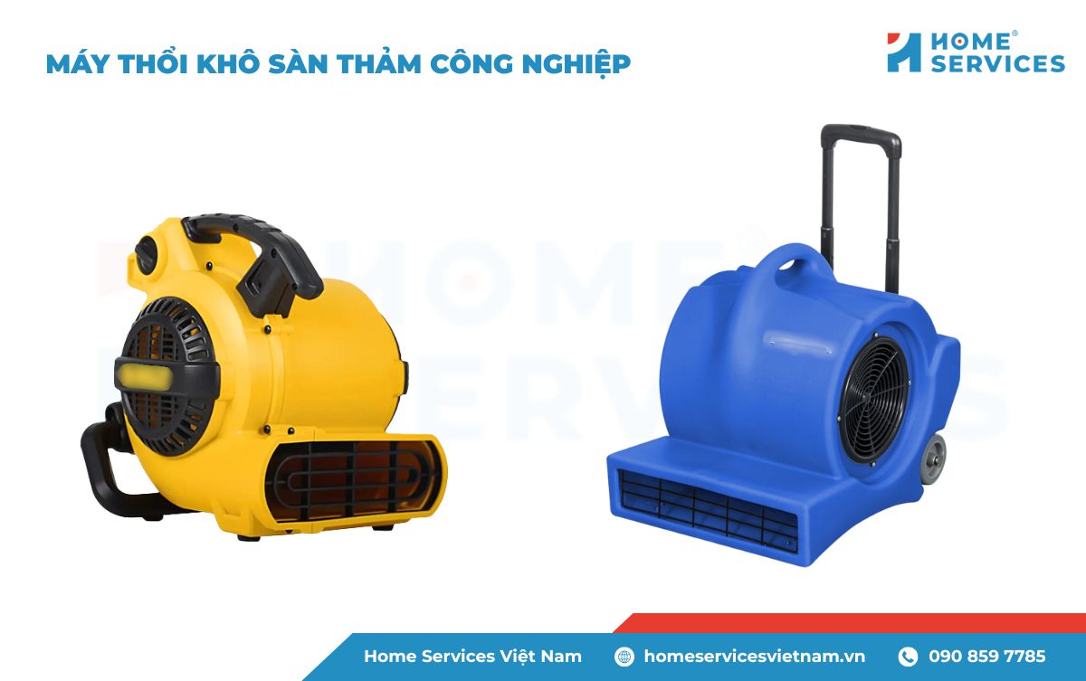 Máy thổi khô sàn | Tạo luồng gió mạnh để đẩy nhanh quá trình bay hơi của nước, giúp sàn khô nhanh, tránh nguy cơ trơn trượt. | Sảnh tòa nhà, hành lang, khu vực nhà vệ sinh, hoặc bất kỳ nơi nào sau khi chà sàn hoặc bị đổ nước. | |