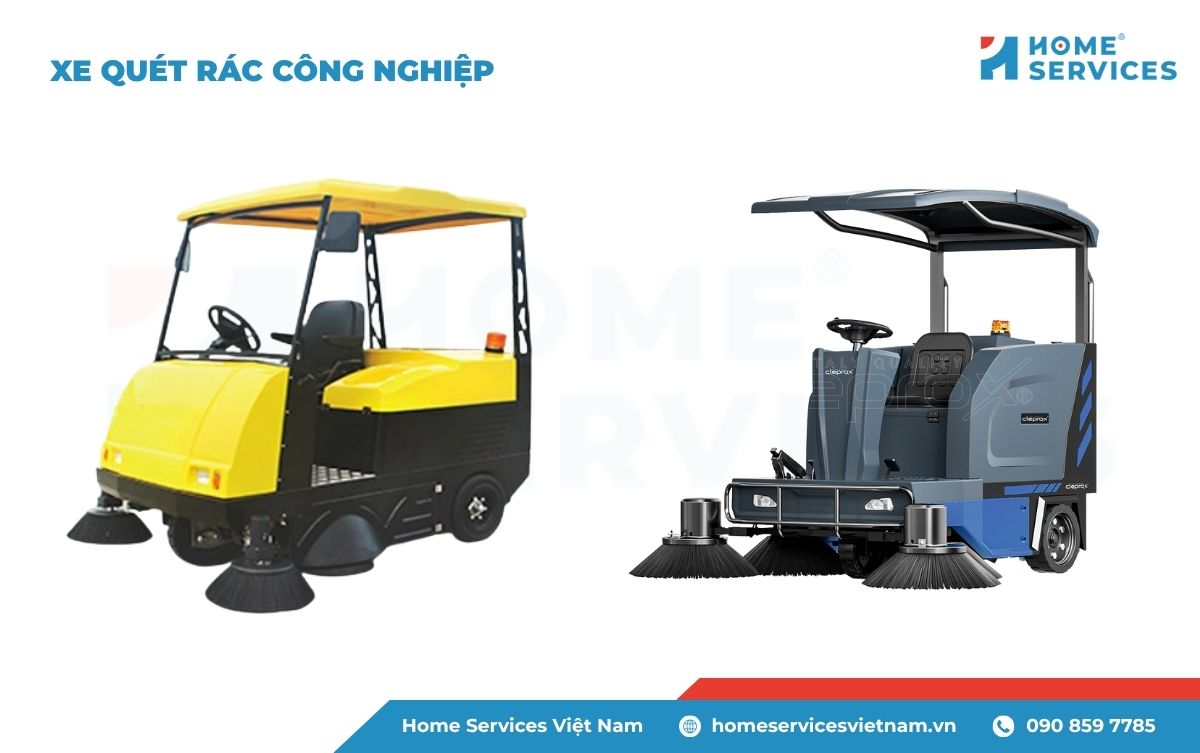 Xe quét rác | Quét và thu gom rác thô, bụi, lá cây trên diện rộng, là bước chuẩn bị trước khi chà sàn. | Bãi đỗ xe, khuôn viên nhà máy, đường nội bộ, nhà kho lớn. | |